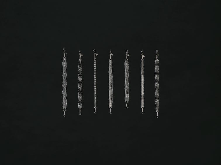 一つ一つ手作業で形作られた銀のビーズは、仕上げに燻しを施すことで陰影と奥行きを生みだし仕上げられています。